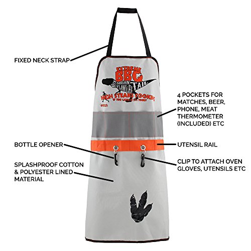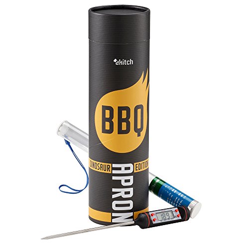 BBQ King Master Mens Grilling Apron with Digital Meat Thermometer (Dinosaur)