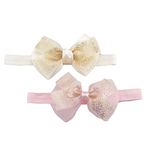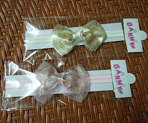 DANMY Baby Elastic Hair Band Lace Bow Headband Flower Hair Accessories(2PCS)