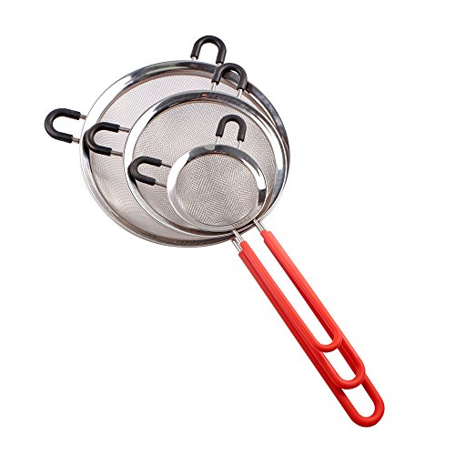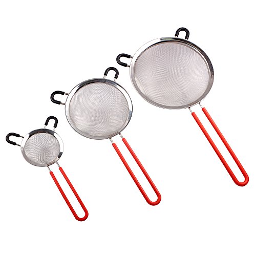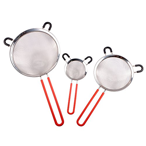 Webake 3 Pack Stainless Steel Mesh Strainers Kitchen Fine Strainers Sieve Sets Colander with Silicone Cover Handle