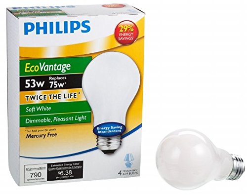 Philips Lighting 433524 A19 53 Watt Soft White EcoVantage Dimmable Bulb 4 Count