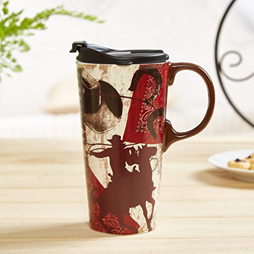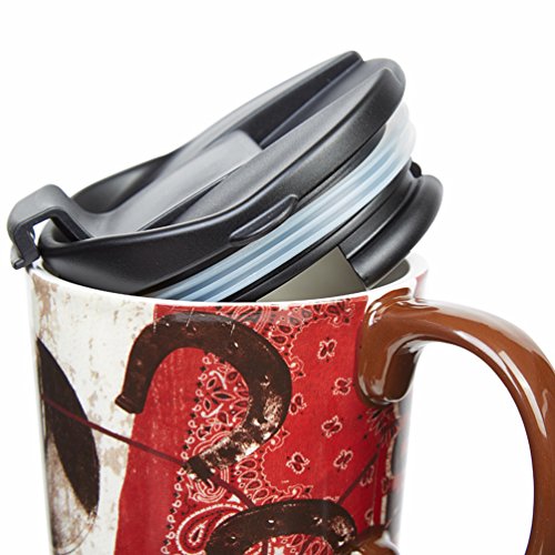 Ceramic body with plastic, spill-proof lid with silicone ring for keeping drinks warm or cold