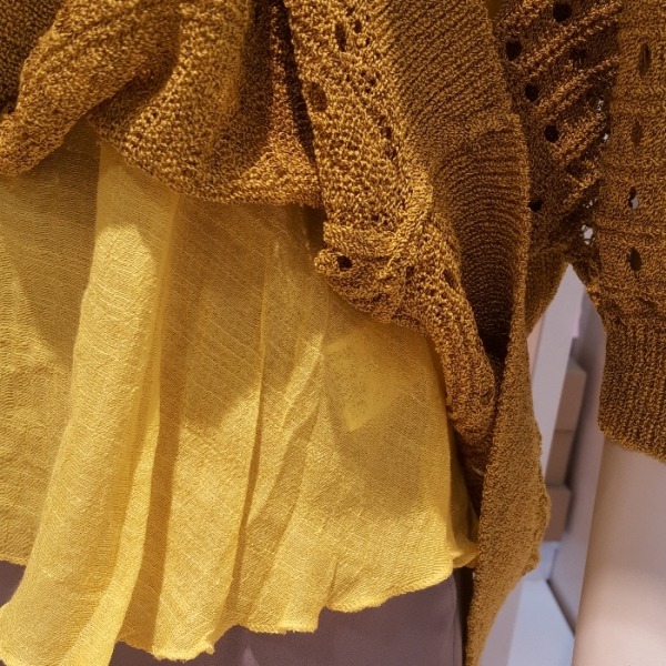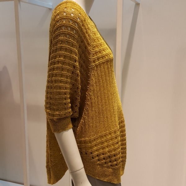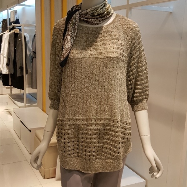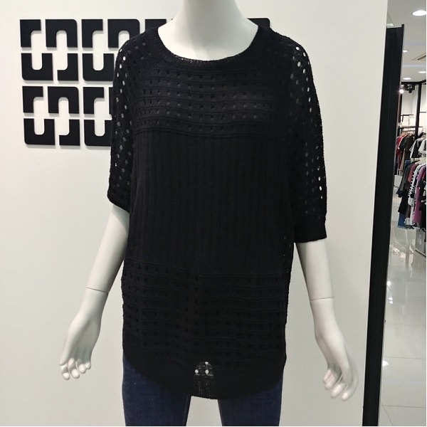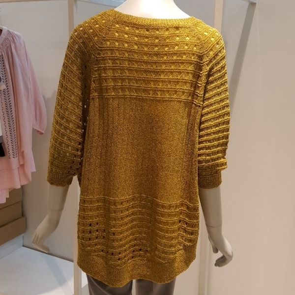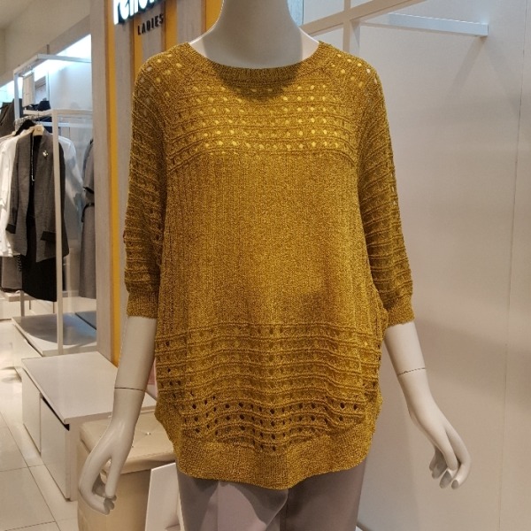 27인치 기장의 케이프형 니트 풀오버 입니다.아크릴과 폴리가 혼방된 부드러운 터치감의 원사를 사용하여 느슨하게 짜여진니트 풀오버 입니다. 루즈한 스타일로 가볍게 걸치기 좋은 여름 니트 입니다.조직도 여러 스타일로 들어가 고급스러워 보입니다. 비침 방지를 위해 이너가 넥 부분과 합봉이 되어있습니다. 사이즈는 FREE입니다.