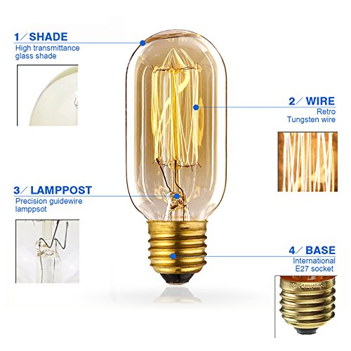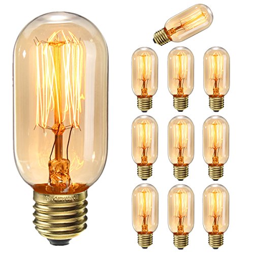 - ▶Set of 10 vintage filament bulbs tubular nostalgic, nostalgic reproduction,E27/E26 base T45 13 anchors 60W 110v 2200K dimmable glass(with a little amber glass). These dimmable vintage Edison bulbs provided a much brighter and more useful light (also can be dimmed by the dimmer switch, but the dimmer switch are not included).