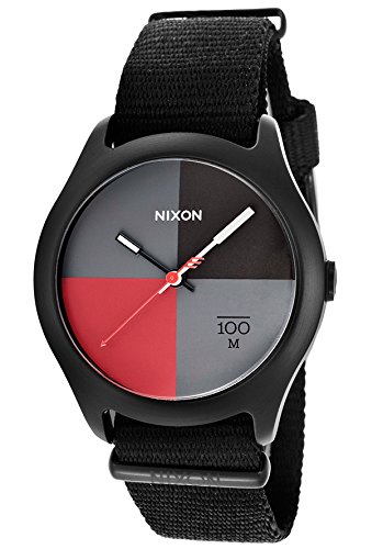 -. Title : Nixon Quad Black Gray Red Dual Black Nylon Mens Watch A344-1167