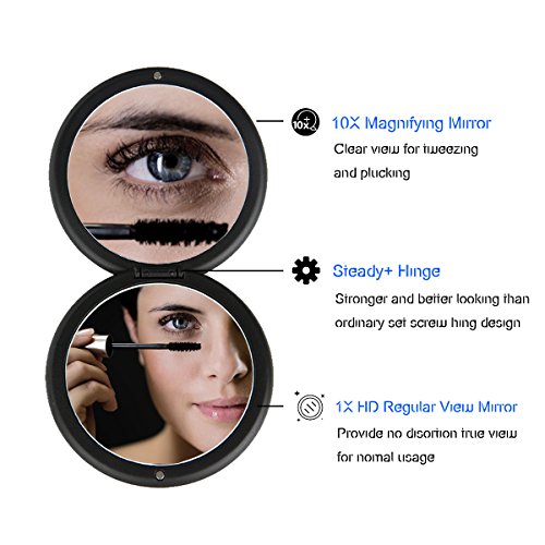 - 1X & 10X MIGNIFICATION: Two mirrors meet all you need for cosmetic usage, 1X HD regular mirror reflect your true face, while the premium distortion-free 10X mirror works great for mascara, tweezing and plucking, flossing etc.