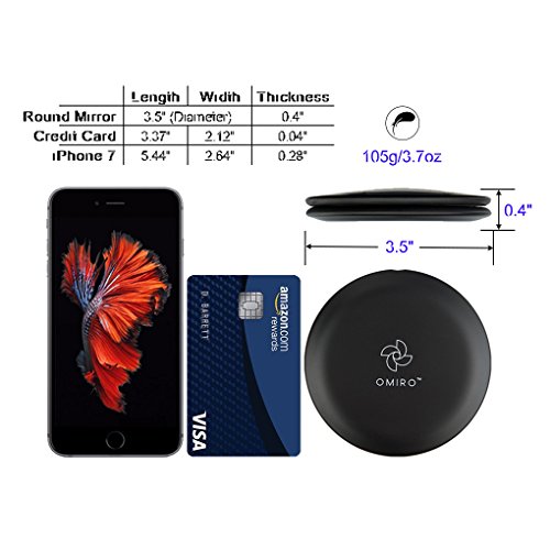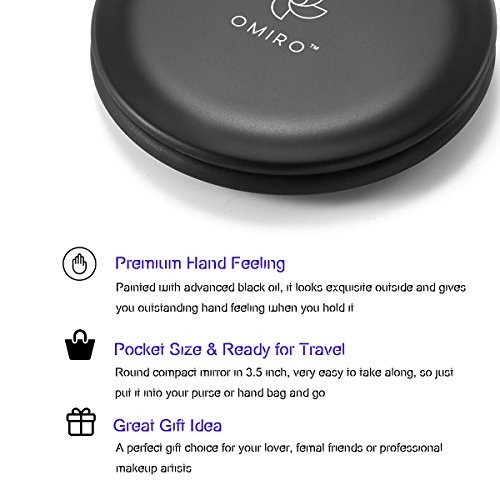 OMIRO Folding Compact Mirror, 1X/10X Magnification 3½” Pocket Size Round Hand Mirror for Travel Makeup (Black)