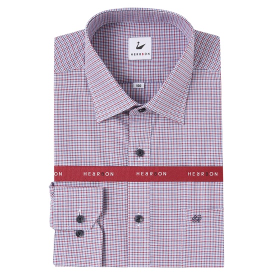 -면혼방소재의 체크무늬의 일반핏셔츠.