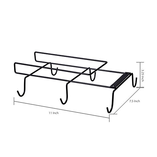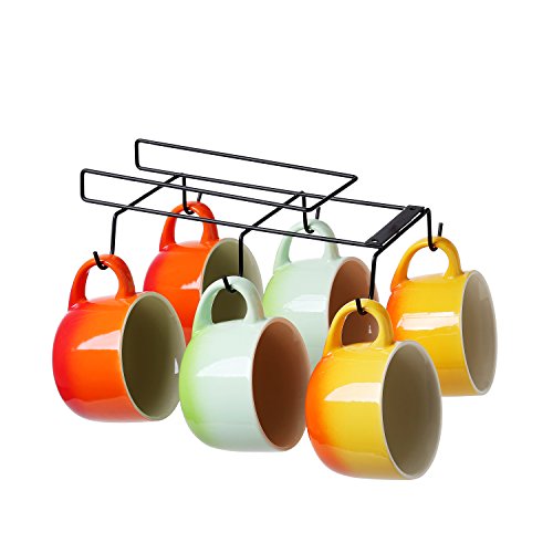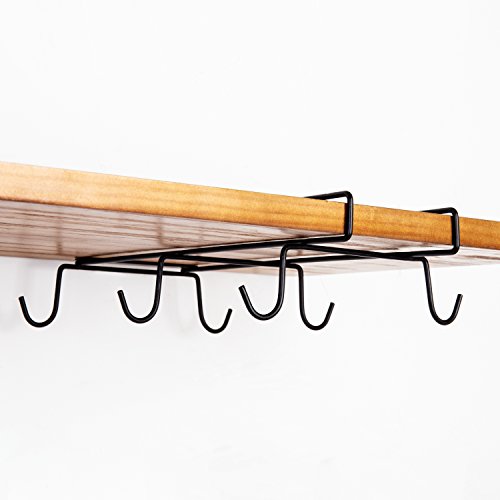6 Hook Under-Shelf Black Metal Mug Rack, Coffee Cup Holder