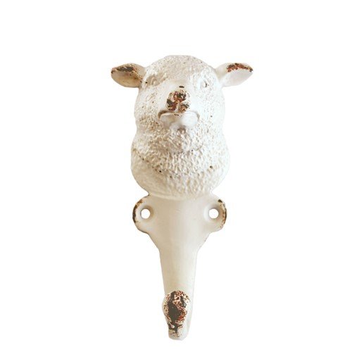 SHEEP BUST WALL HOOK ATIQUE WHITE IRON 2.5 x1.625 x 4.875"H