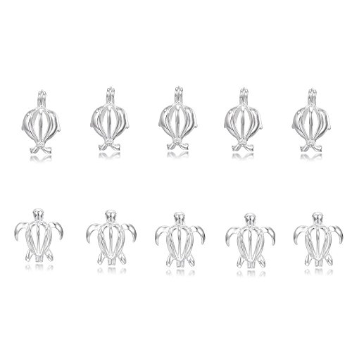 10pcs Mixed Silver Sea turtles with Dolphins Shape Cage Locket ,Add Your Own Beads, Stones, Rock to Cage,Add Perfume and Essential Oils to Create a Scent Diffusing Pendant Charms