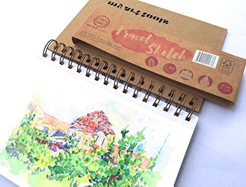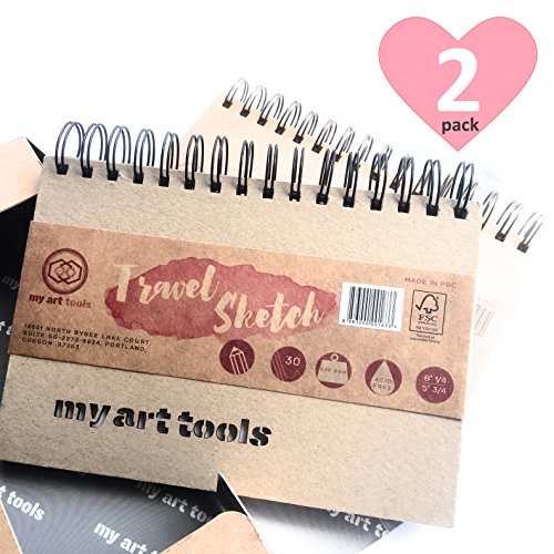 Twin Pack art set supplies Spiral bound Sketchbook 6 X 8", 150lb/220gsm, total 60 Sheets of 120 drawing pages, take a light watercolor wash, Acid Free, Archival, FSC, Eco paper for school supplies