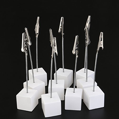 This item is a set of 10pcs note paper holder clips, which are made of resin and stainless steel, wonderful desktop document holder with translucent cube base and crocodile clip. Great for writing down unexpected office tasks and perfect for home or office with limited space.