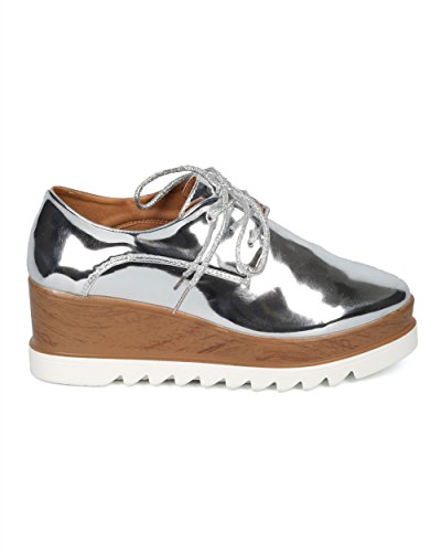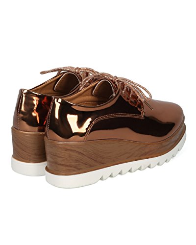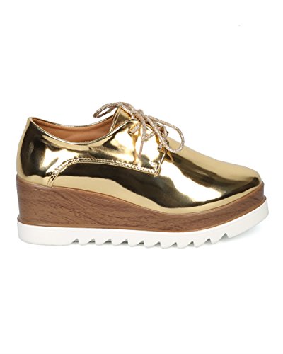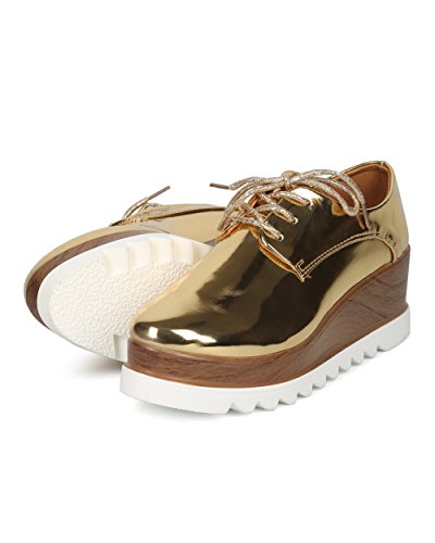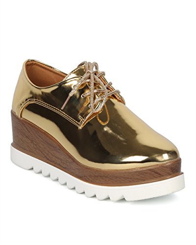 Women Double Stacked Platform Spectator - Creeper Oxford Shoe - Platform Loafer Wedge - HC99 By...