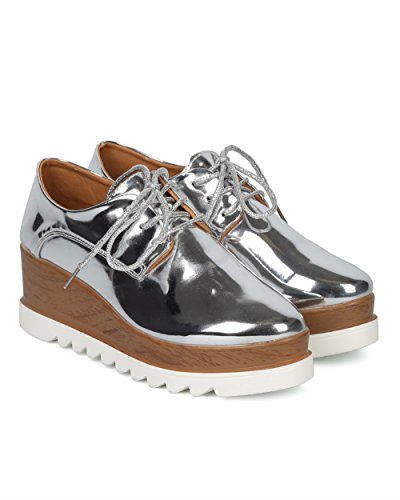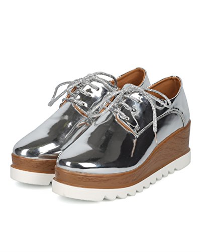 Product DescriptionThese unique creepers are made with a pointy toe, lace up front and double stacked platform. Also featuring a faux wooden finish on the upper platform, lug outsole and lace up closure.0