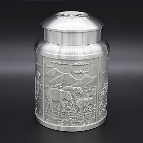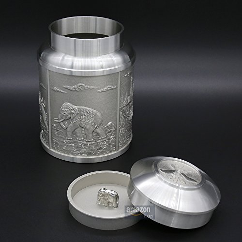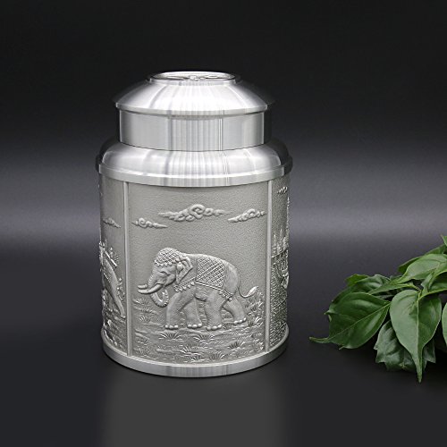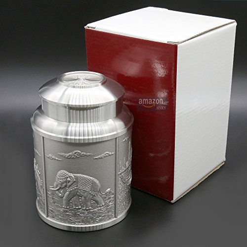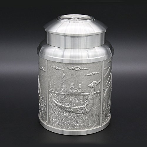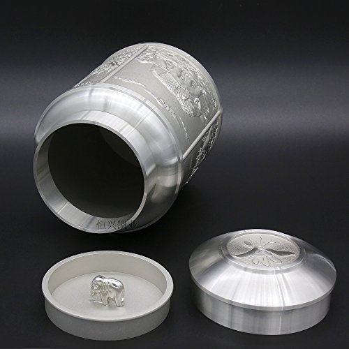 ★Product Size: Height:4.5 inch/11.5 cm Bottom Diameter:3.1 inch/8.0 cm Net Weight: 545g ★What is Pewter? Pewter is one of the most valuable precious metals in common since thousand years ago until today. Fine pewter is an alloy of tin. It can be highly polished or buffed to a satin finish. Pewter, like other precious metals, has set standards that specify that pewter muscontain at least 92 % pure tin. But products of Oriental Pewter (Thailand) exceed the standard of 92% pure tin. Our products contain 97% pure tin, Antimony and copper 3% (Lead free) which absolutely safe to use. ★Our Pewter: Our pewter is an alloy of tin, antimony and copper, tin being the main component at 97% Tin in its pure form, whilst being the fourth most precious metal in common use (after platinum, gold and silver ) today, is too soft for practical use. Copper and antimony are therefore added as hardening agents. Pewter is available in a variety of finishes all ideal for the production of giftware, being highly practical and durable whilst also being easily engraved. Tin is a plentiful natural resource and tin mining has little or no impact on the environment. Tin is bright and attractive and extremely versatile. ★How to Care? To care for your Oriental pewter's pewter ware, please take care your pewter by do not knock or jostle or scratch on pewter ware with anything which can cause damage. We recommend you wash the article in warm water with a light solution of dishwashing soap and dry with a soft cloth. Please do not use abrasives or caustic detergents to polish your pewter ware. ★Notes: Do not put the Tin caddy in Oven, Microwave or dishwasher to avoid damage. Pull up tin lid when you open the tin caddy. Do not rotating tin lids in case the abrasion causes! 0