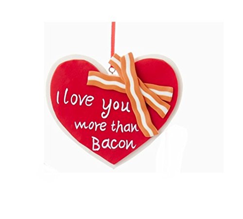 -. Title : 3.5" Red "I Love You More Than Bacon" Heart Whimsical Hanging Christmas Ornament