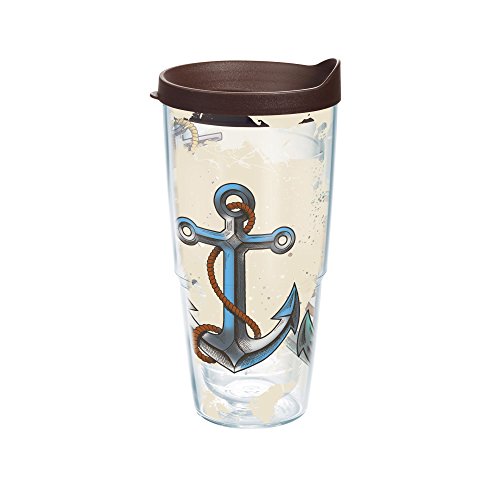 Tervis Nautical Anchor Away Wrap Bottle with Brown Lid, 24-Ounce, On The Water