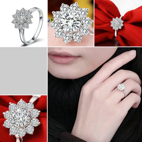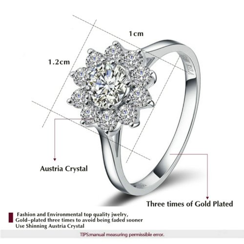 - Title : Yoursfs 18k White Gold Plated Sunflower Cubic Zirconia CZ Bridal Wedding Jewelry Ring (6)