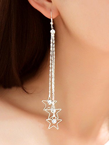 A&C Fashion Korean Version Rhinestones Star Shapes Earrings for Women. Unique Handmade Earrings Jewelry for Girl. (Silver Color)