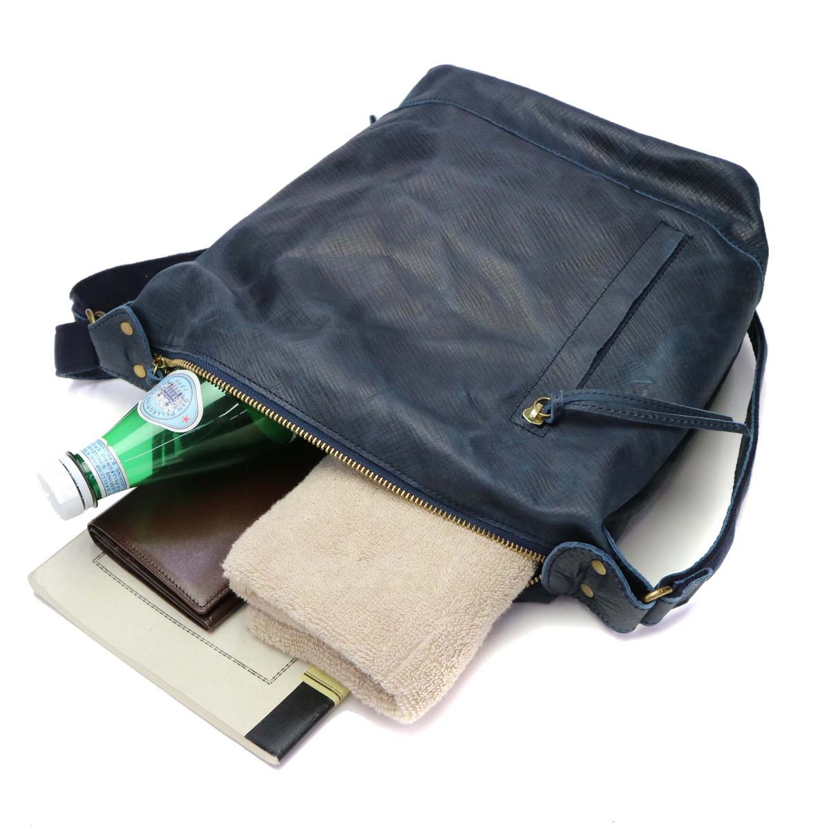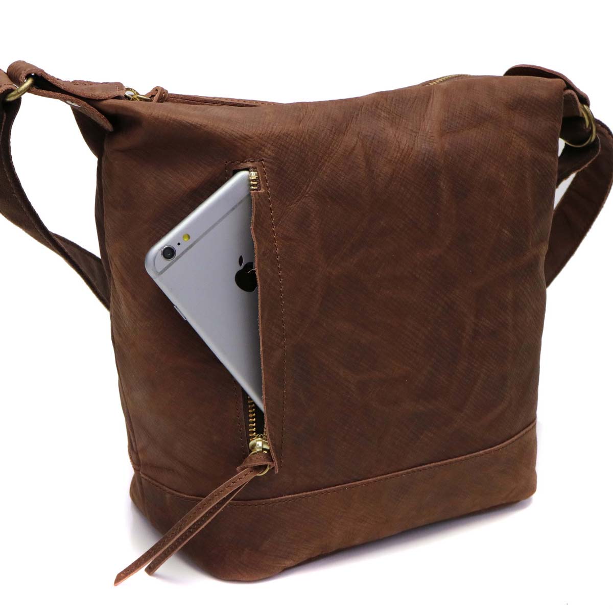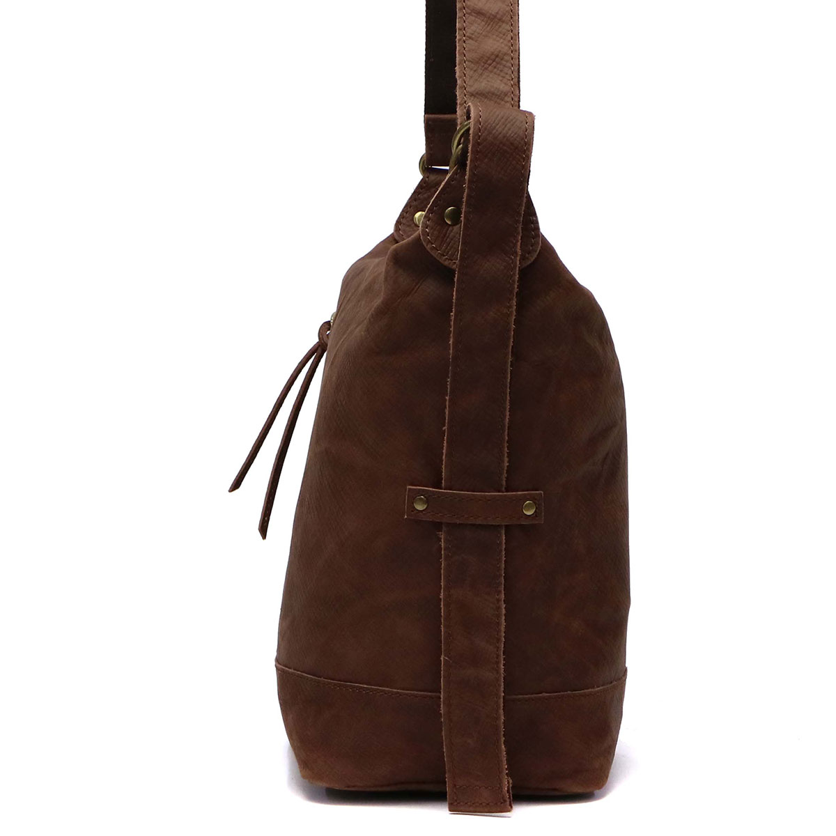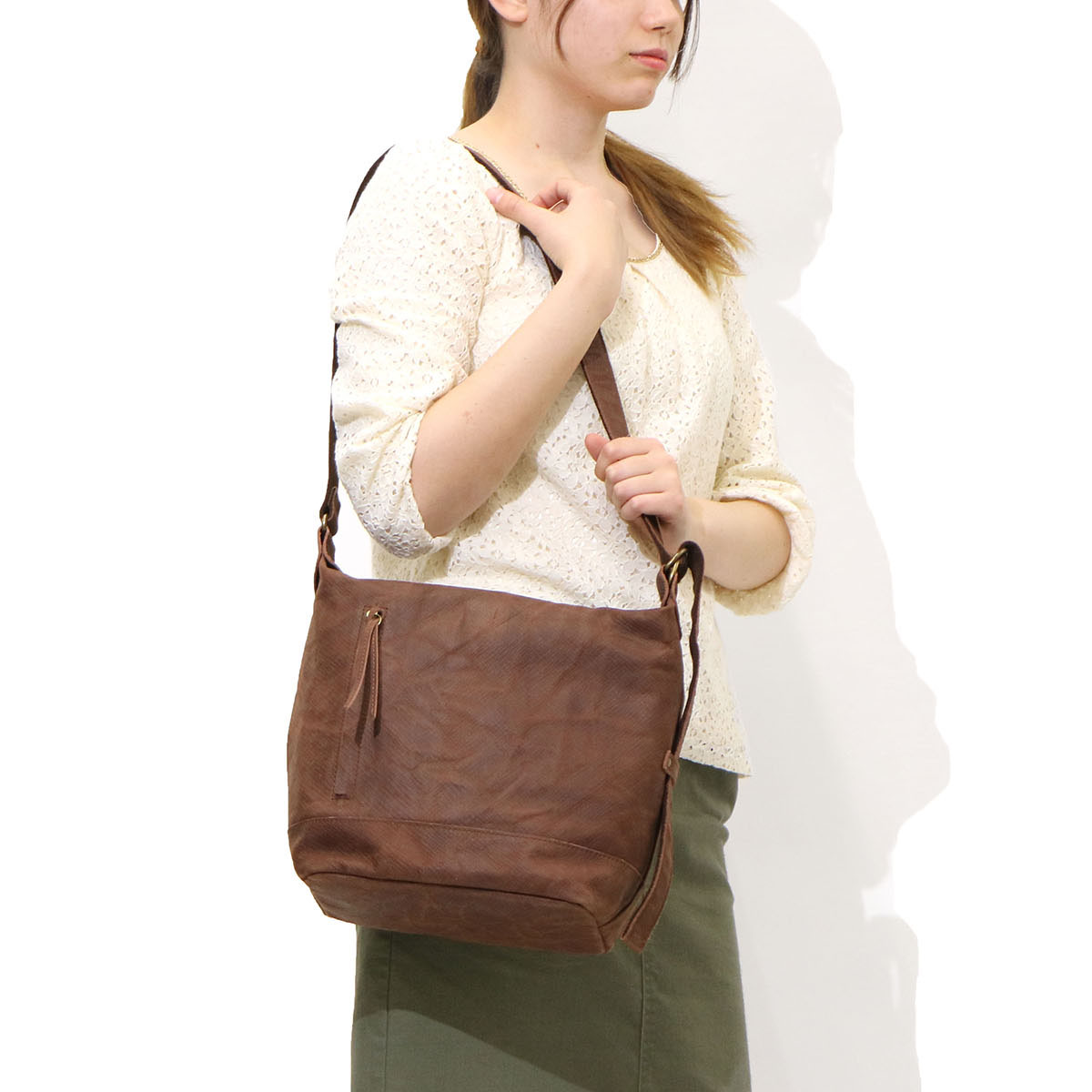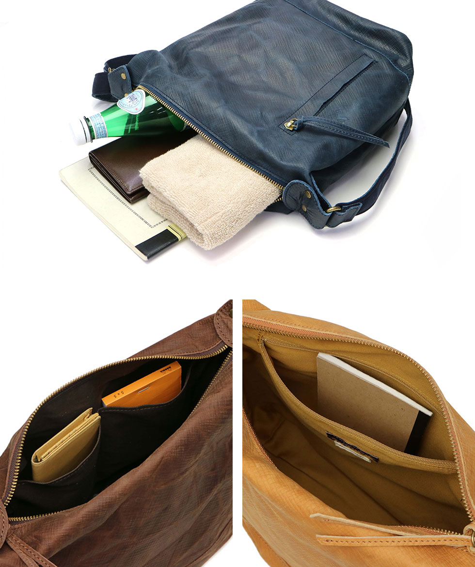 It is a shoulder bag of the series "Energy" featuring domestic raw rind dyed with dyes and wax, featuring a texture that is soft and textured. It has been finished in a unique atmosphere, such as embossing and smearing and rubbing like atari. The size suitable for everyday use, functional pocket bag also functional.