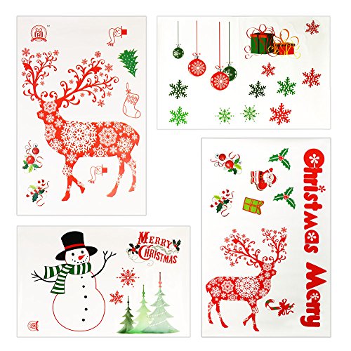Glass Wall Decals, 4 Pieces Removable Christmas Window Sticker, Wall Glass Static Sticker Christmas Decorations Window & Door Decals for Xmas and New Year