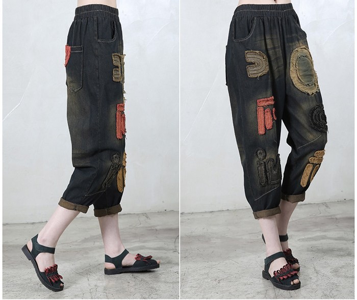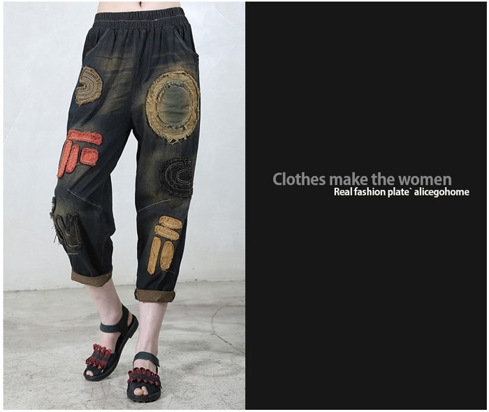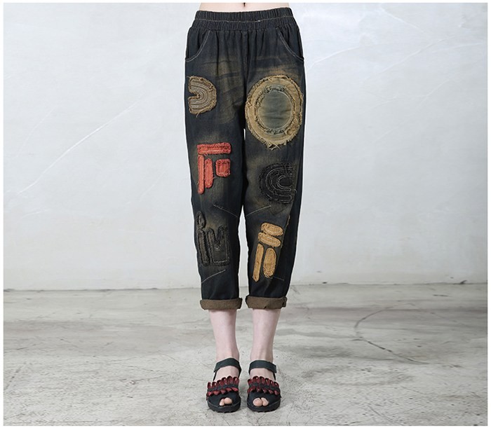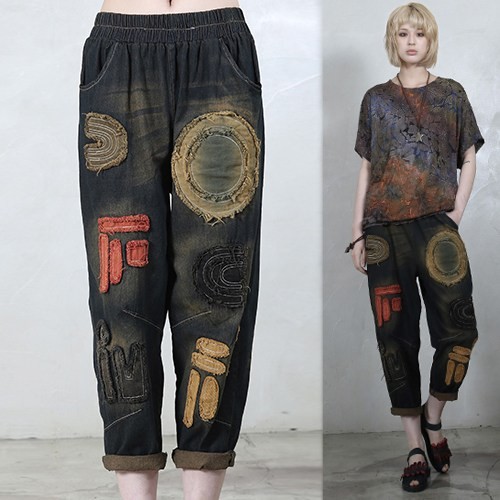 商品名:クロップドパンツ レディース 刺繍 デニム 春 2018 モード系 個性的 40代 ファッション