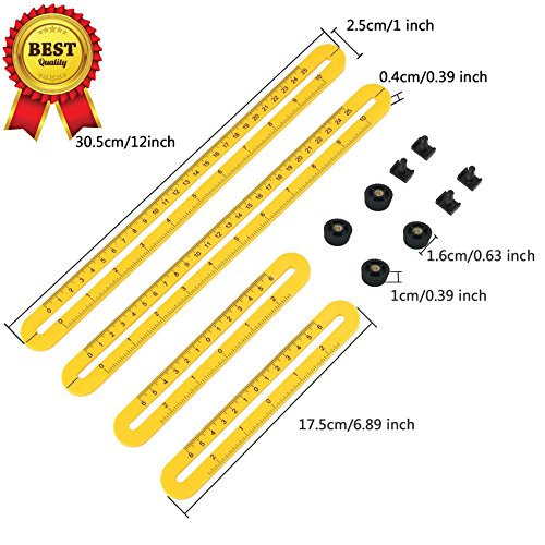 Template Tool Multi Angle Measuring Ruler - Sullos Tools Layout - Angles & Shapes Finder | With Metal Screw Threads - For Professional & General DIY Wood Tile Flooring