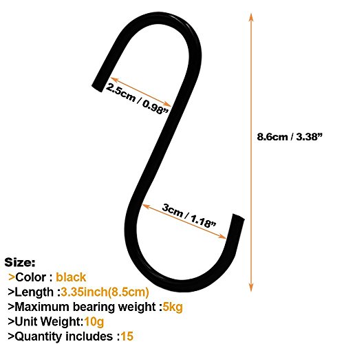 DOLAIMI 15 Pack Heavy-Duty Steel S Shaped Hooks S Type Hooks Hanger Sling Dog, For Kitchen Bathroom Bedroom Office Hanging Shower Curtain Clothes Pot Plants Shoses Towels Storage Multiple Uses.