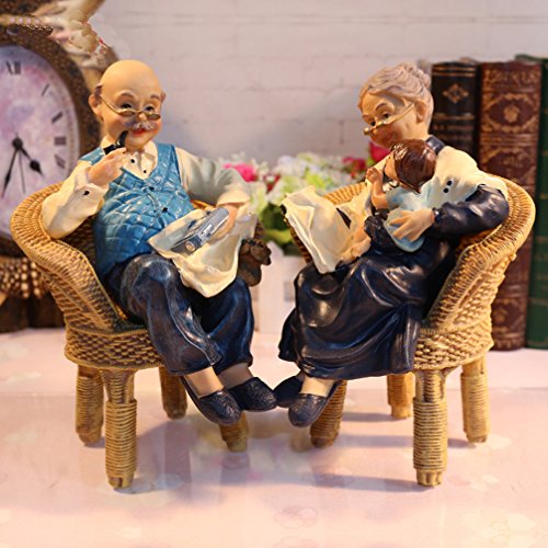 Coostyle Warm Family Elderly Couple Figurines, Loving Old Age Life Resin Home Decorations with Gift Card for Mother’s day Father’s day Anniversary (Family)