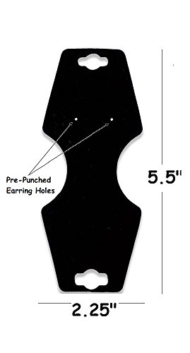 N'ice Packaging 100-Pcs Large Black 5.5" x 2.25" Necklace/Earring Jewelry Display Cards, New Retail Self-Adhesive Necklace/Earring Foldovers