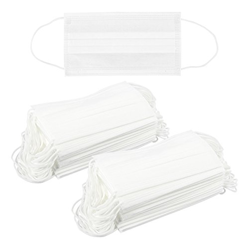 Pack of 100 Disposable Face Masks - Medical and Dental Masks - Great for People with Allergies and the Flu, White