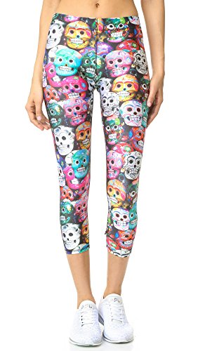 A rainbow skull print gives these cropped Zara Terez leggings a bold, bright look. Overlock seams. Covered elastic waist.