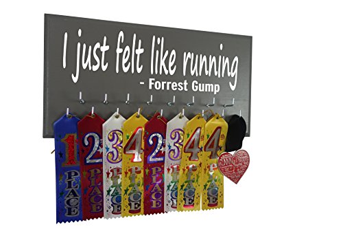Race bib and medal display - I JUST FELT LIKE RUNNING - FORREST GUMP - Running medal holder with Forrest Gump quote - Gift for runners