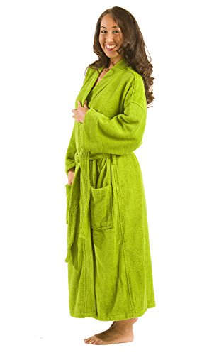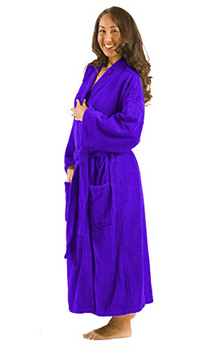 Binding : Apparel Product Description TERRY BAMBOO BLENDED COTTON KIMONO FULL LENGTH UNISEX WOMENS and MENS BATHROBES, SNAG Free Loops -Our model wears One Size robe. -Two patch pockets, double stitch for durability. -These plush cozy robes extremely water absorbent can be used for bath, spa, shower, swimming pool, lounging or sauna. -70% Rayon derived from bamboo and 30% Cotton on the Loops. There is 15% Polyester in base of the robe to make the robe very durable if you compare cotton robes.