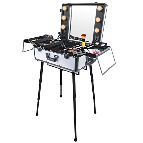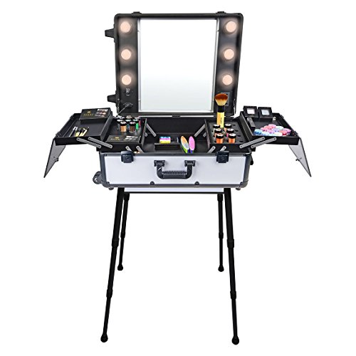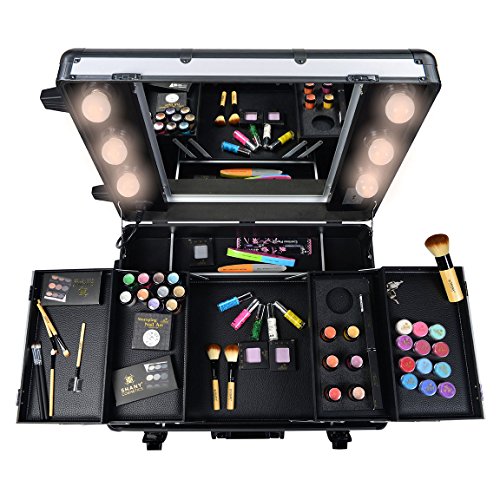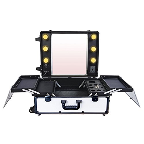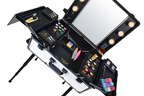 ReleaseDate : 2014-04-30 Studio : SHANY Publisher : SHANY Binding : Health and Beauty Product Description This top of the line professional makeup case has many features that make it stand out from the rest. Lightweight and easy to carry around is just the beginning. The case is made of aluminum and interchangeable trays for easy storage and organizing the beauty tools. The pull up handy rectangular organizer can be placed on the handle to hold the large electric tools like blow dryers, flat irons and etc. The bottom wheels are not the ordinary wheels you see on all other cases. The wheels are semi elastic, so when you pull the case, it won’t resist to the ground and it feels you are rolling on the glass. Six 40 watt lights are included in the case and can be upgraded to up to 50 or 60 watt if necessary. The lighting kit comes with a soft white/yellow light, is this is designed for professional applications indoor, and you may change them to day light or sun light lamps if needed. All six lights are dimmable and can be adjusted with a key placed on the case. The main plugs connects to the wall outlet via a long heavy duty cable. Inside the case is covered with dustproof thin layer of film which prevents the dusty powders to get in to the fabric. The expandable tray has a magnificent clear top lids which makes it easy to organize and find your favorites .When the case is open it can stand as high as 5 foot tall and it can go down to 2 foot if doing the application on the table. The most innovative part of the design is the four solid legs which unlike other brands are made of solid isolated aluminum. It prevent the legs from loosening over time. The legs are so light that they just add 2 pound to the case, this is the first design and manufacturing of such a case which can stand the rough job in the makeup artist industry. The case also comes with an extra outlet on the mirror, so you can easily plug in your electric tools without the need of the extension cords. If you are an international customers, you can but a convertor plug and use our case in your country as well. 0