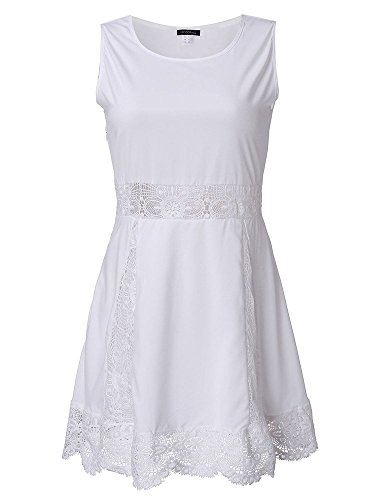 Feature : Women White Lace Crochet Hollow Out Sleeveless Chiffon Mini Dress (Random) / If you want to choose, please contact us after ordering. If not, we will random. / (Random)Color White L, White M, White XL, White XS, 2XL White