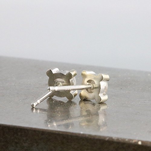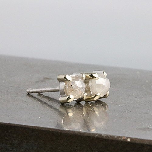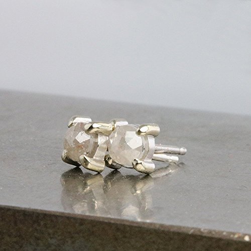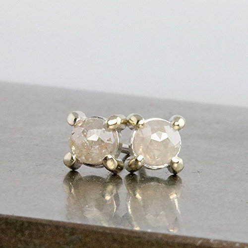 -. Title : Tiny Rose Cut Diamond Stud Earrings - 14k White Gold and 4mm Pink Cream Diamonds