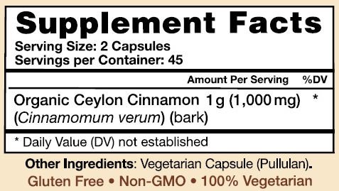 100% USDA Certified Organic Ceylon Cinnamon Supplement (Naturally Grown in Sri Lanka)