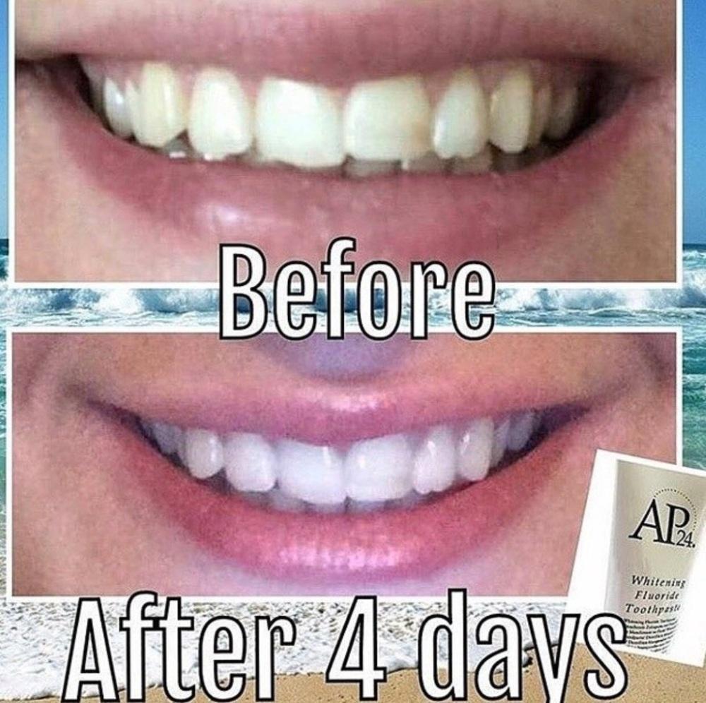 AP-24® Whitening Fluoride Toothpaste lightens teethu0026nbsp;withoutu0026nbsp;peroxide while preventing cavities and plaque formation. This gentle, vanilla mint formula freshens breath and provides a clean, just-brushed feeling thatu0026nbsp;lasts all day.
