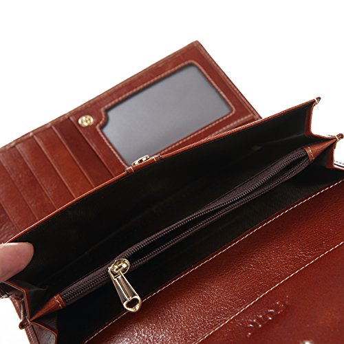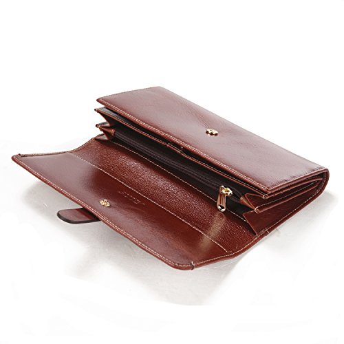 -. Title : S-ZONE Damen Echtes Leder Lange Tri-fold Geldbörse Clutch Handtasche