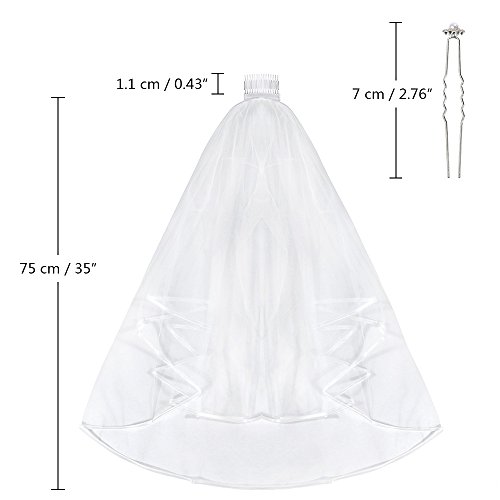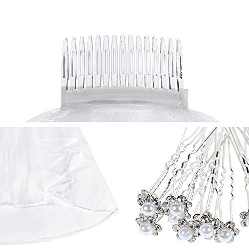 Lictin Wedding Bridal Veil with Comb and White Lace Embroidered, Wedding Veils for Women Including 20pcs Hairpins?white?