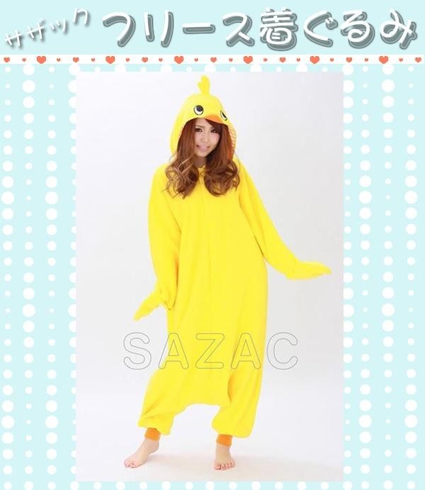 大人気キャラクター「ひよこちゃん」の着ぐるみです。あたたかいフリース素材で着心地もGOOD!!パジャマやお部屋着にもオススメです☆