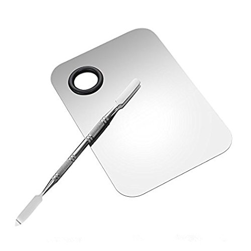 It comes with a rubber-coated finger hole and a 2 different-ended spatula, which will help you easy and safely to apply makeups and to scoop out cream products to keep makeup products more sanitary.