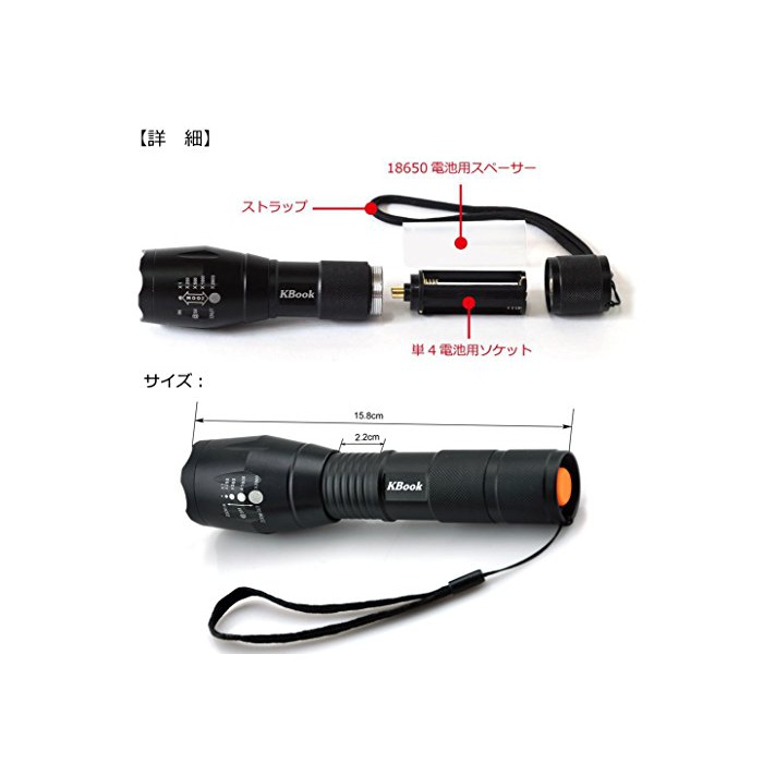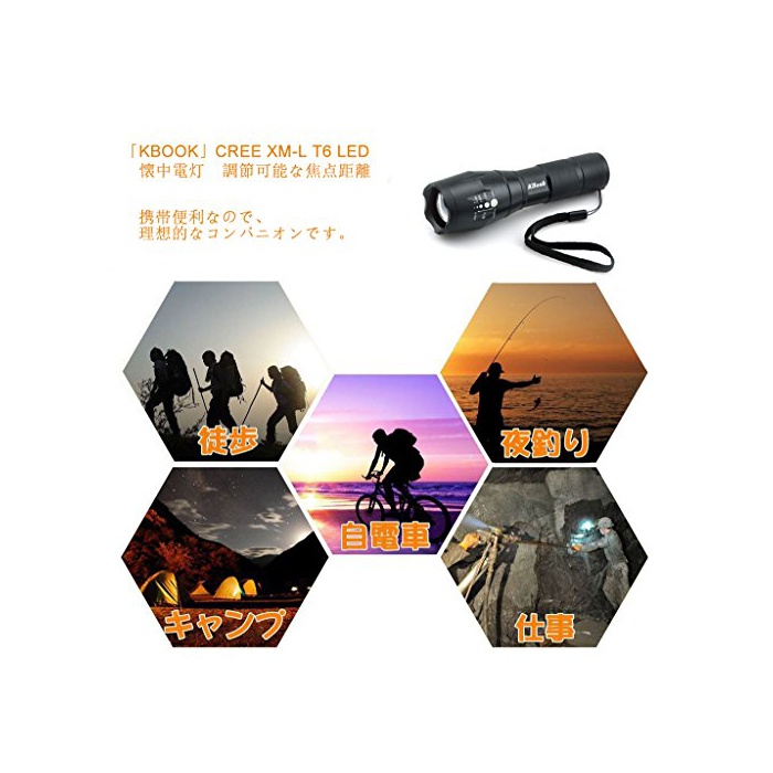 원본상품명: 「KBook」CREE XM-L T6 LED 中電 小さくて、超明るくて(3000ルメン) 調節可能な焦点距離 アウトドア