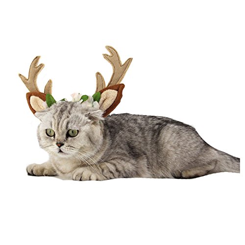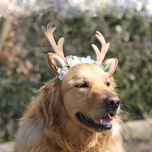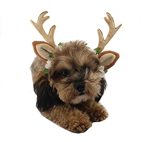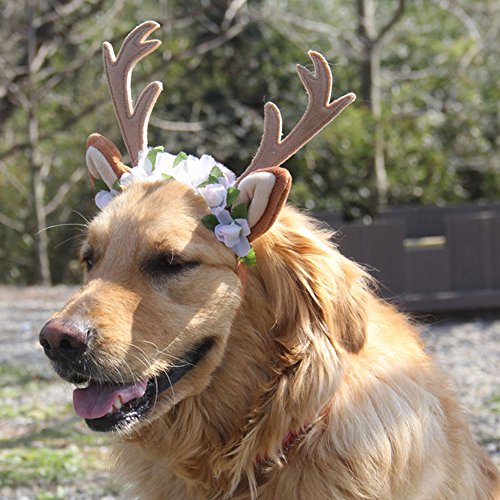 -. Title : Penates Dog and Cat Christmas Elk Antler Reindeer Hat Cap Dog Head Decoration