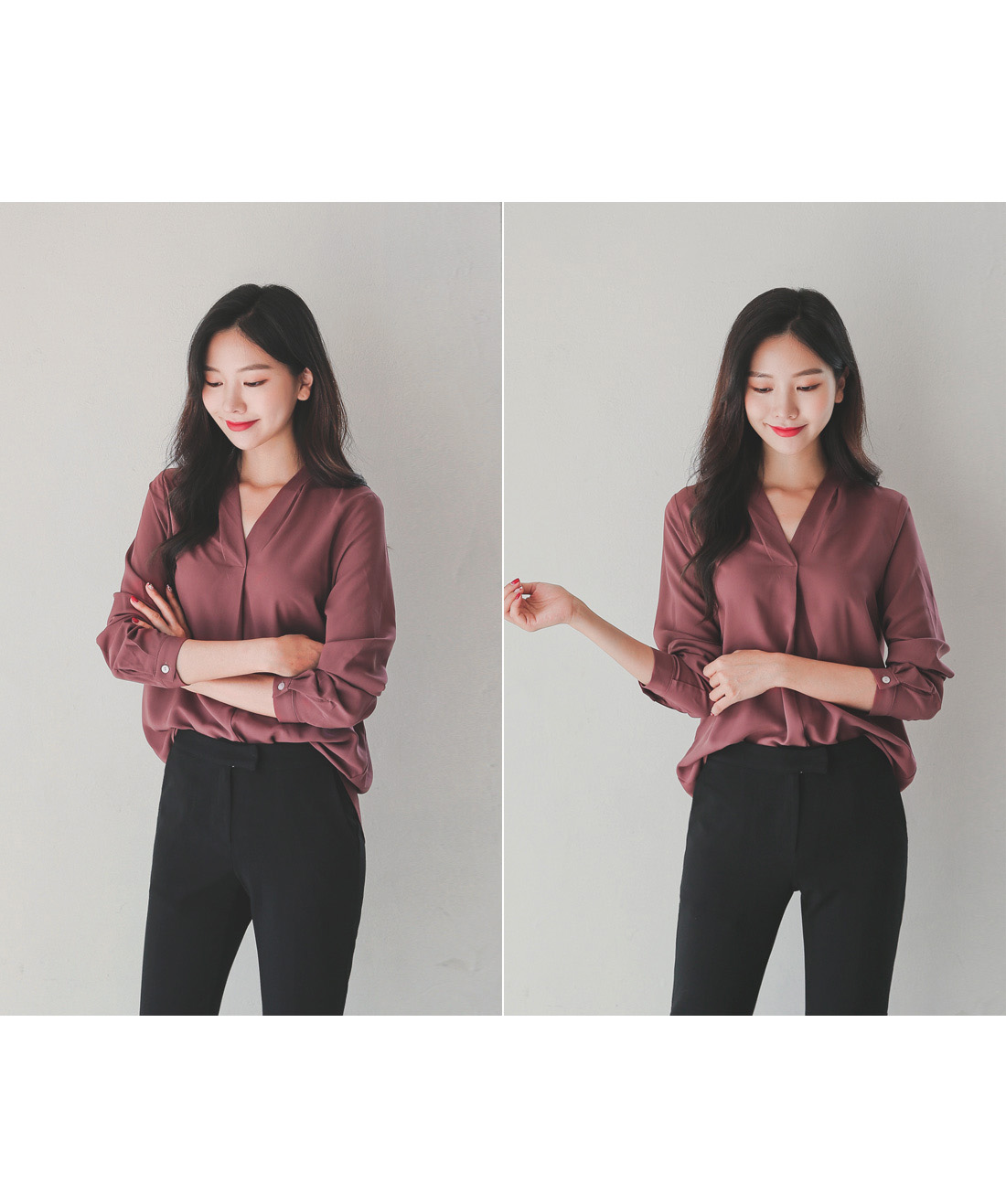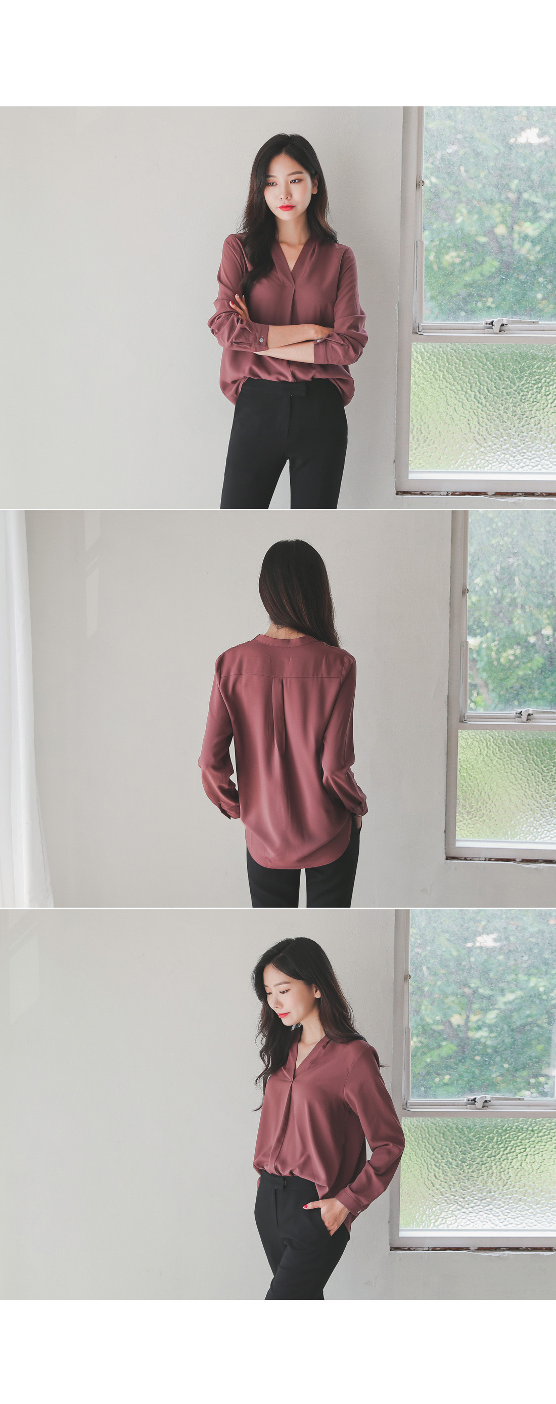 세련된 무드로 즐기기 좋은 반오픈 블라우스~!_x000D_