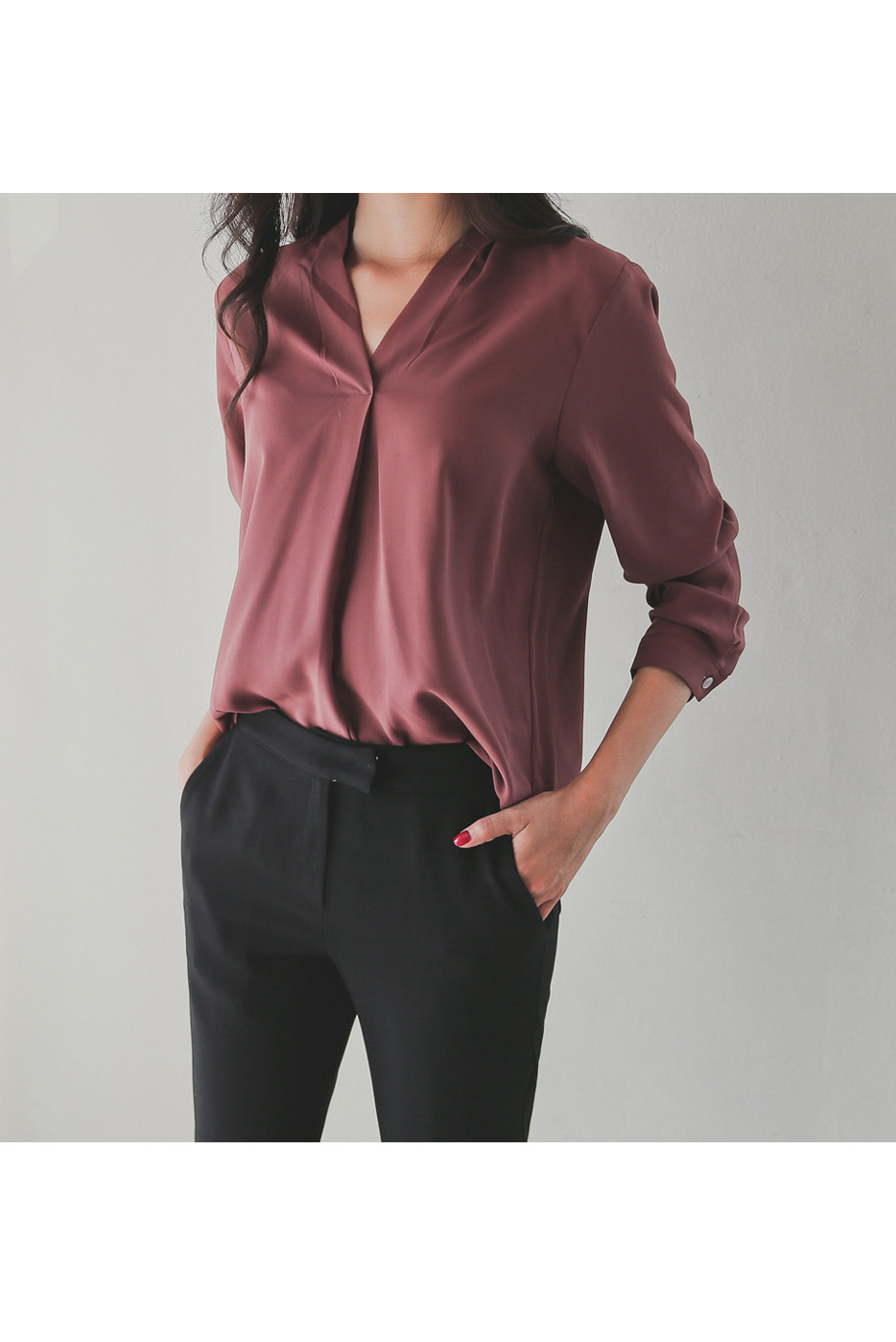 쇄골라인이 드러나 은은한 섹시미가 느껴지는 블라우스