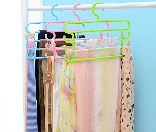 -. Title : OUREILI 5 PACK Multi-Purpose Closet hangers Closet Organizer Closet Hangers Space Saver Storage Rack for Hanging Jeans Scarf Tie, Family Economical Storage (5 Piece)