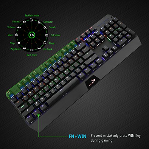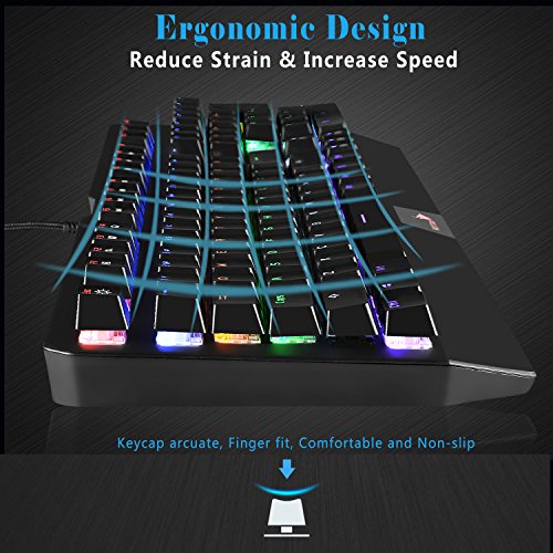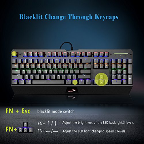 【pluggable Blue Switches】 Provide you “clicky” tactile feedback,Give you an edge over competitors with accurate response. Strong sense of rhythm and powerful clicking sound.Making you feel super cool and hyper-reality gaming world,50 million times keystroke test。FULLY REMOVABLE KEY CAPS: The included key cap puller makes cleaning or changing key caps easier.