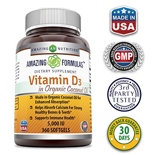 Amazing Formulas Vitamin D3 in Organic Coconut Oil is a supplement that is intended to be taken once daily. With each dose, you are getting vitamin D3, 5,000 IU at a time. This vitamin D3 is made with coconut oil which is known for its fast absorbing properties to allow you to get the benefits of this vitamin straight away. The coconut oil in this women's vitamin D3 also helps the body to absorb calcium at a much swifter rate to promote the health and strength of your teeth and bones like never before.